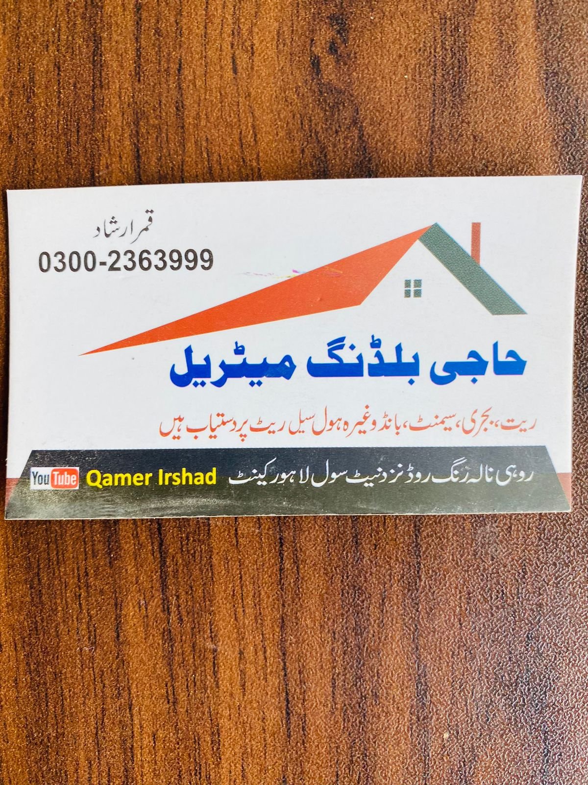 قمر ارشاد کی زیر نگرانی حاجی بلڈنگ میٹیریل پاکستان میں معتبر بلڈنگ میٹیریل سپلائر ہے۔ یوٹیوب چینل "Qamer Irshad Vlog & Experiences" پر 2 لاکھ 70 ہزار سے زائد سبسکرائبرز کے ساتھ، ہم روزانہ مارکیٹ ریٹس اور تعمیراتی معلومات شیئر کرتے ہیں۔